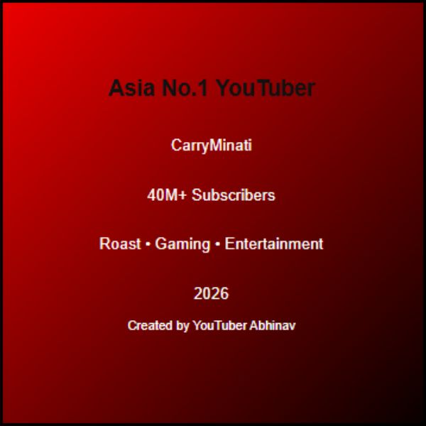 अगर 2026 की बात करें, तो एशिया का सबसे बड़ा Individual YouTuber CarryMinati है।