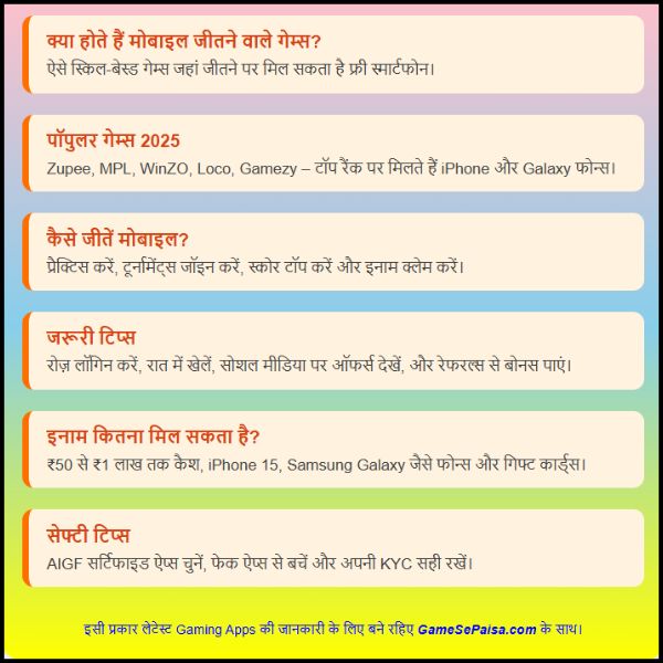 मोबाइल जीतने वाला गेम | 2025 में कौन-कौन से गेम्स दिला सकते हैं फ्री स्मार्टफोन