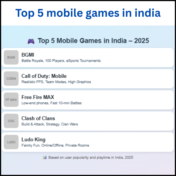 Top 5 Mobile Games India 2025 | top 5 mobile games in india